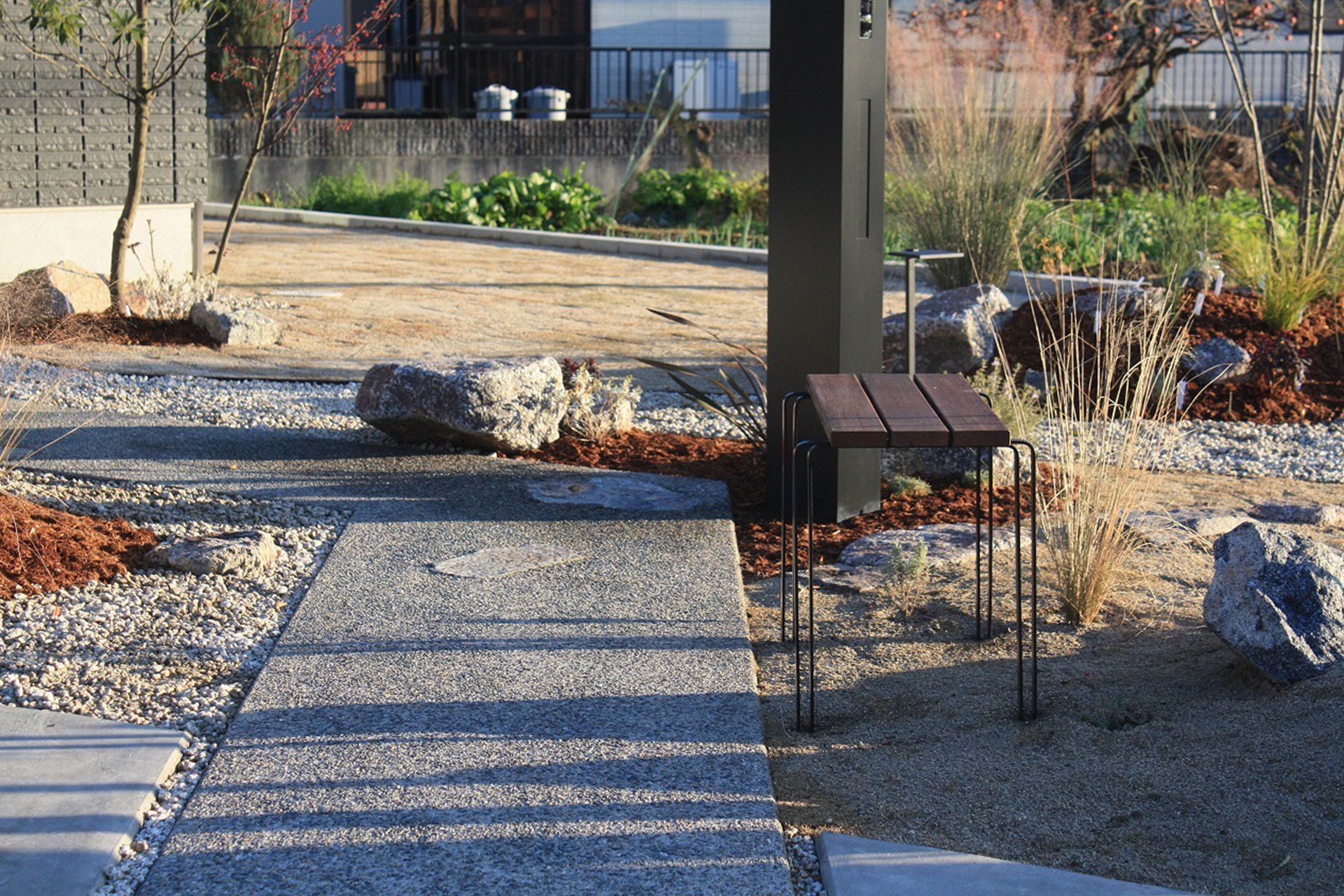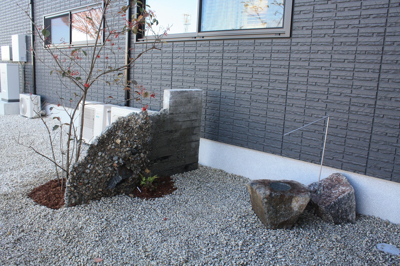 コンクートパーテーション、水鉢、ステンレス筧(ハブモリオ作)